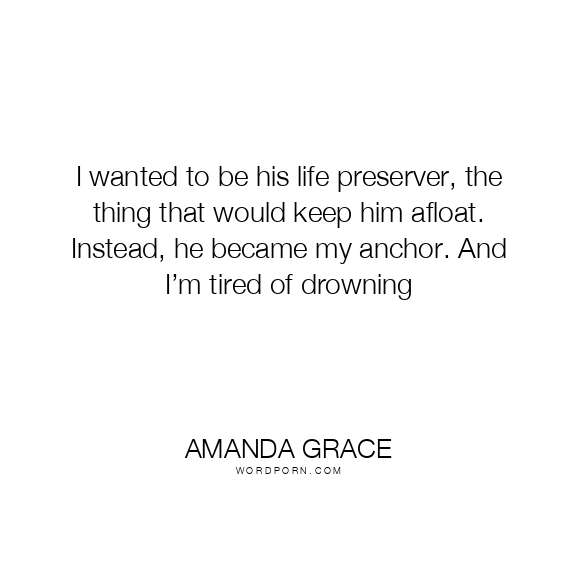I wanted to be his life preserver, the thing that would keep him afloat. Instead, he became my anchor. And I’m tired of drowning