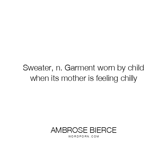 Sweater, n. Garment worn by child when its mother is feeling chilly