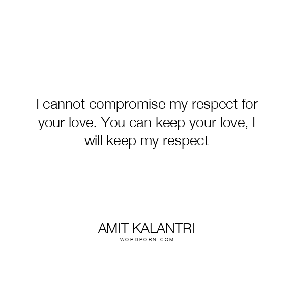 I cannot compromise my respect for your love. You can keep your love, I will keep my respect