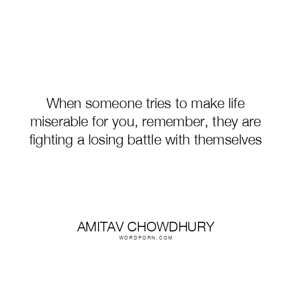 When someone tries to make life miserable for you, remember, they are fighting a losing battle with themselves