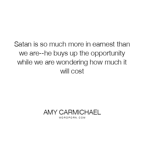 Satan is so much more in earnest than we are--he buys up the opportunity while we are wondering how much it will cost