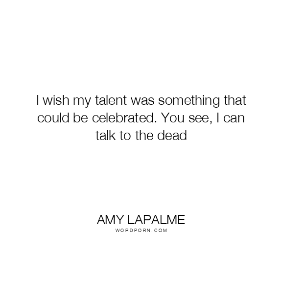 Amy LaPalme quote. I wish my talent was something that could be celebrated. You see, I can talk to the dead