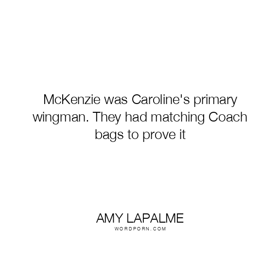 Amy LaPalme quote. McKenzie was Caroline's primary wingman. They had matching Coach bags to prove it