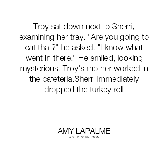 Amy LaPalme quote. Troy sat down next to Sherri, examining her tray.