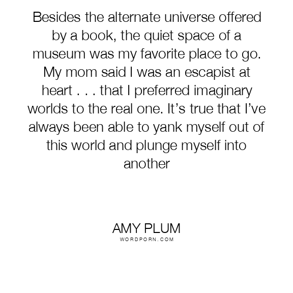Besides the alternate universe offered by a book, the quiet space of a museum was my favorite place to go. My mom said I was an escapist at heart . . . that I preferred imaginary worlds to the real one. It’s true that I’ve always been able to yank myself out of this world and plunge myself into another