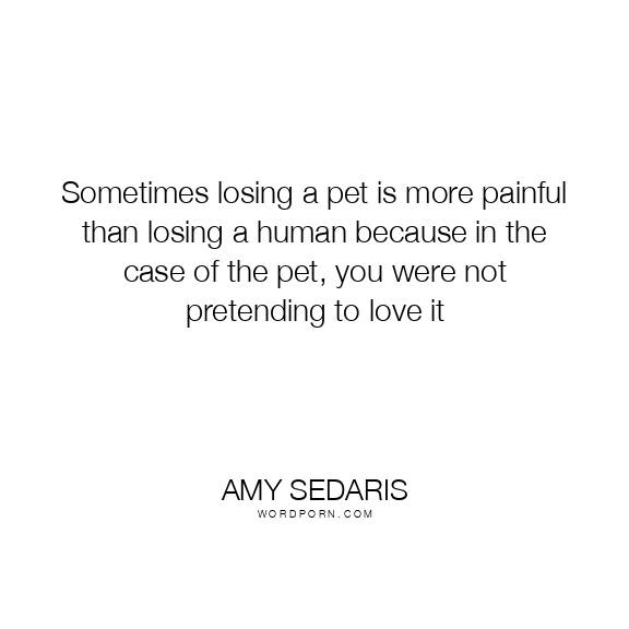Sometimes losing a pet is more painful than losing a human because in the case of the pet, you were not pretending to love it