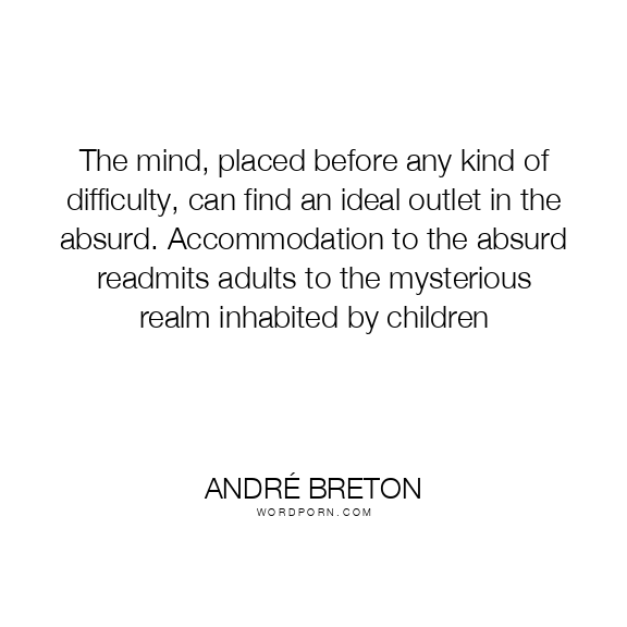 The mind, placed before any kind of difficulty, can find an ideal outlet in the absurd. Accommodation to the absurd readmits adults to the mysterious realm inhabited by children