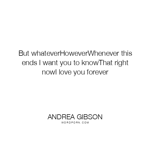 But whateverHoweverWhenever this ends I want you to knowThat right nowI love you forever