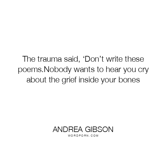 The trauma said, ‘Don’t write these poems.Nobody wants to hear you cry about the grief inside your bones