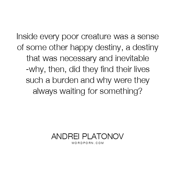 Inside every poor creature was a sense of some other happy destiny, a destiny that was necessary and inevitable -why, then, did they find their lives such a burden and why were they always waiting for something?