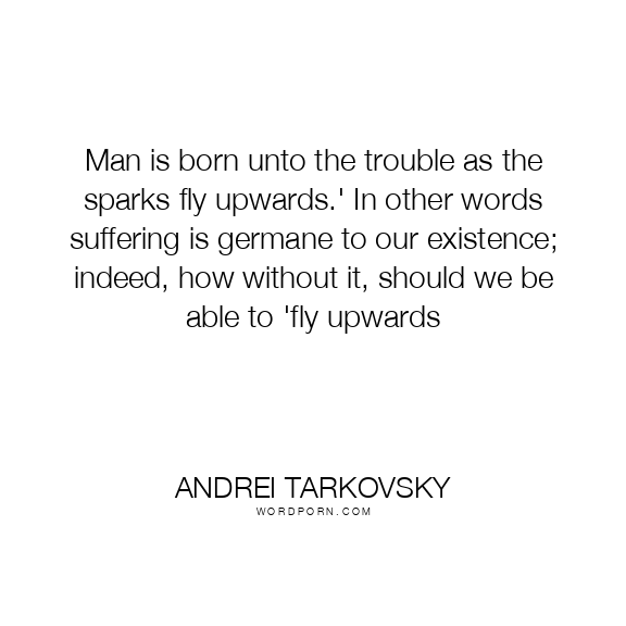 Man is born unto the trouble as the sparks fly upwards.' In other words suffering is germane to our existence; indeed, how without it, should we be able to 'fly upwards