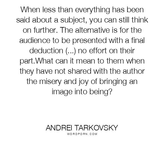 When less than everything has been said about a subject, you can still think on further. The alternative is for the audience to be presented with a final deduction (...) no effort on their part.What can it mean to them when they have not shared with the author the misery and joy of bringing an image into being?