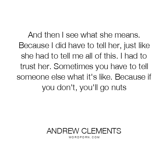 And then I see what she means. Because I did have to tell her, just like she had to tell me all of this. I had to trust her. Sometimes you have to tell someone else what it's like. Because if you don't, you'll go nuts