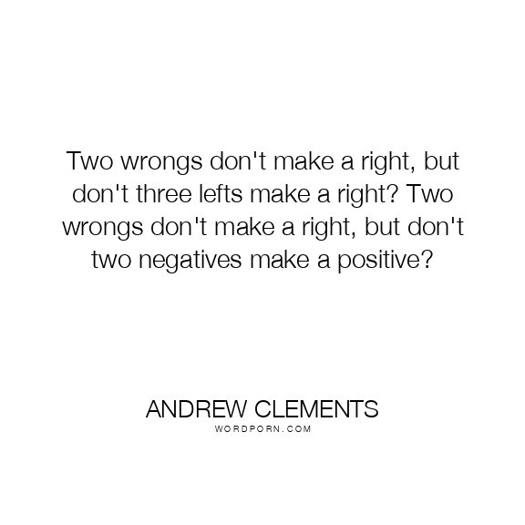 Two wrongs don't make a right, but don't three lefts make a right? Two wrongs don't make a right, but don't two negatives make a positive?