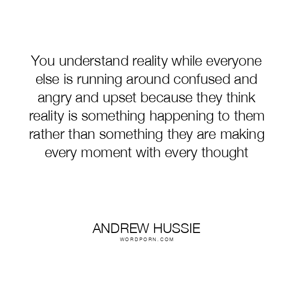 You understand reality while everyone else is running around confused and angry and upset because they think reality is something happening to them rather than something they are making every moment with every thought