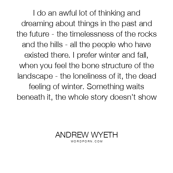 I do an awful lot of thinking and dreaming about things in the past and the future - the timelessness of the rocks and the hills - all the people who have existed there. I prefer winter and fall, when you feel the bone structure of the landscape - the loneliness of it, the dead feeling of winter. Something waits beneath it, the whole story doesn't show