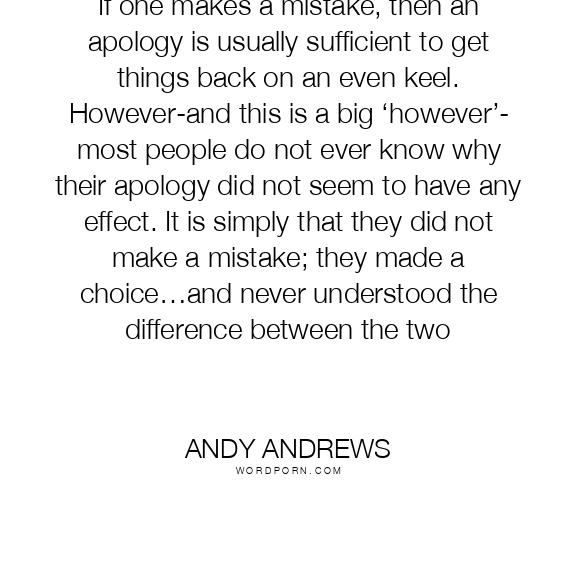 If one makes a mistake, then an apology is usually sufficient to get things back on an even keel. However-and this is a big ‘however’- most people do not ever know why their apology did not seem to have any effect. It is simply that they did not make a mistake; they made a choice…and never understood the difference between the two