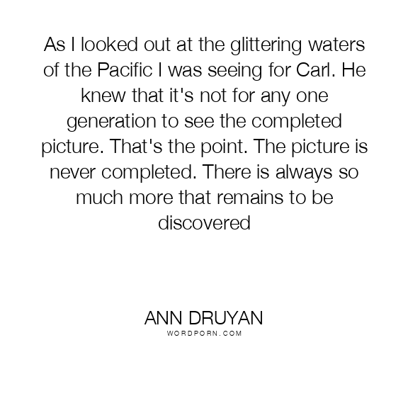 As I looked out at the glittering waters of the Pacific I was seeing for Carl. He knew that it's not for any one generation to see the completed picture. That's the point. The picture is never completed. There is always so much more that remains to be discovered