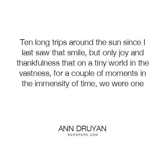 Ten long trips around the sun since I last saw that smile, but only joy and thankfulness that on a tiny world in the vastness, for a couple of moments in the immensity of time, we were one