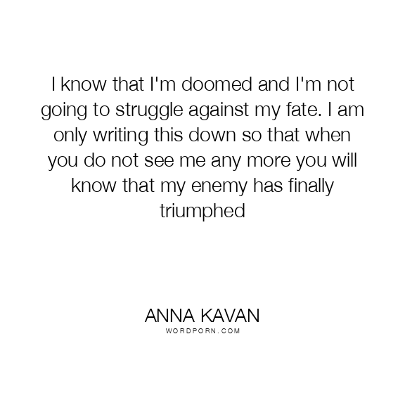 I know that I'm doomed and I'm not going to struggle against my fate. I am only writing this down so that when you do not see me any more you will know that my enemy has finally triumphed