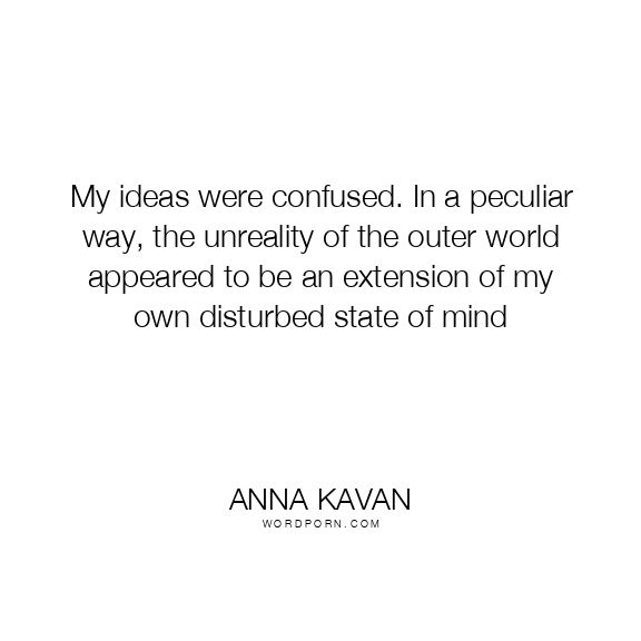 My ideas were confused. In a peculiar way, the unreality of the outer world appeared to be an extension of my own disturbed state of mind