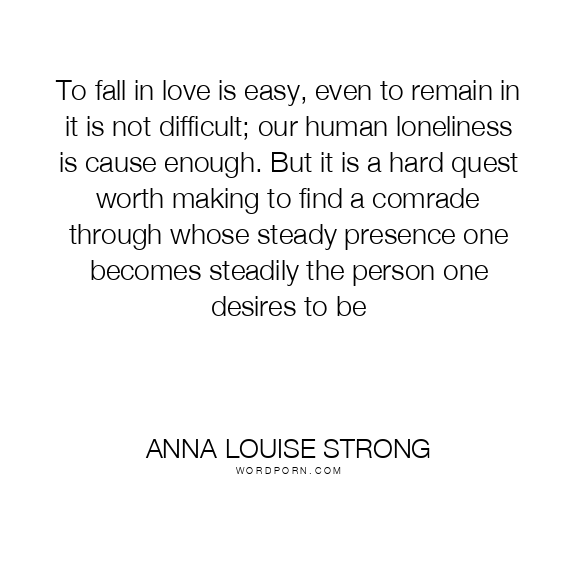 To fall in love is easy, even to remain in it is not difficult; our human loneliness is cause enough. But it is a hard quest worth making to find a comrade through whose steady presence one becomes steadily the person one desires to be