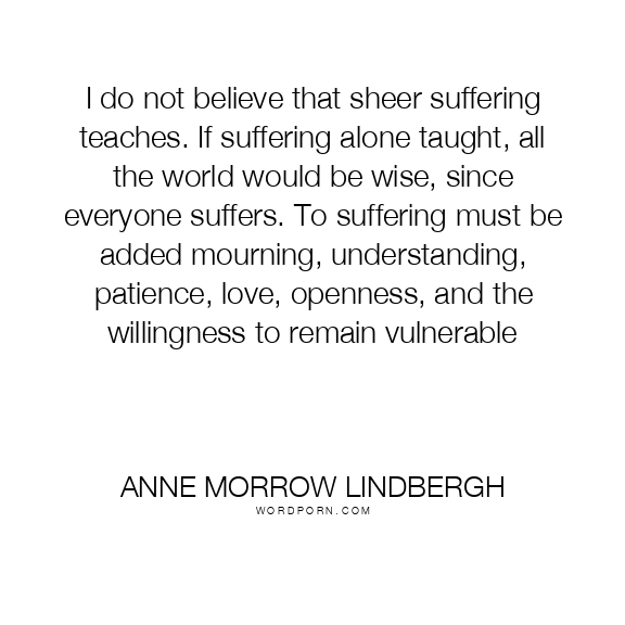 I do not believe that sheer suffering teaches. If suffering alone taught, all the world would be wise, since everyone suffers. To suffering must be added mourning, understanding, patience, love, openness, and the willingness to remain vulnerable