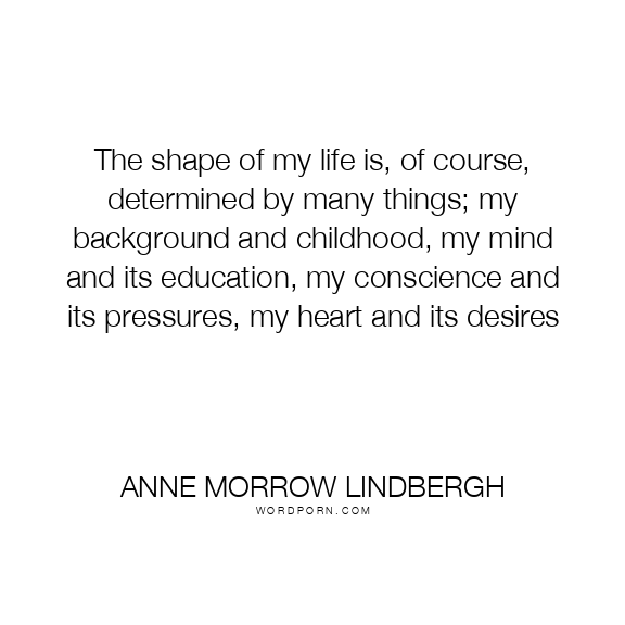 The shape of my life is, of course, determined by many things; my background and childhood, my mind and its education, my conscience and its pressures, my heart and its desires