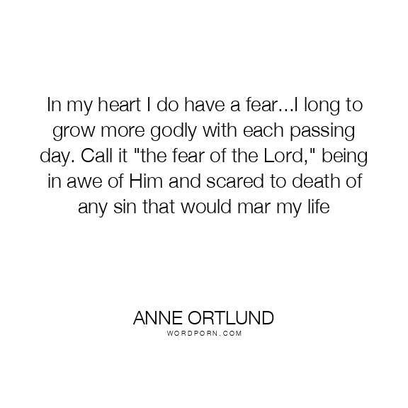 In my heart I do have a fear...I long to grow more godly with each passing day. Call it "the fear of the Lord," being in awe of Him and scared to death of any sin that would mar my life