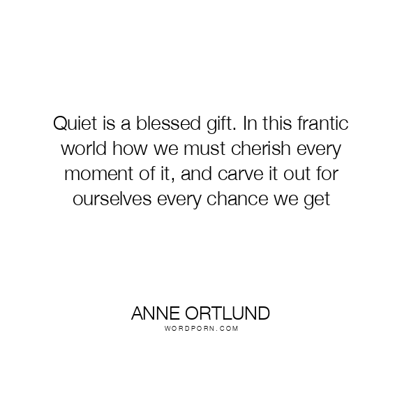 Quiet is a blessed gift. In this frantic world how we must cherish every moment of it, and carve it out for ourselves every chance we get