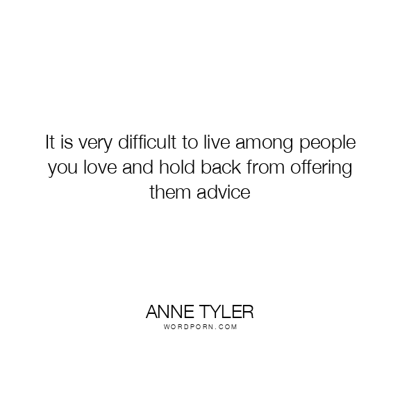 It is very difficult to live among people you love and hold back from offering them advice