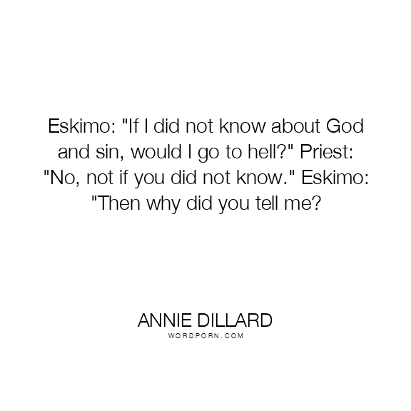 Eskimo: "If I did not know about God and sin, would I go to hell?" Priest: "No, not if you did not know." Eskimo: "Then why did you tell me?