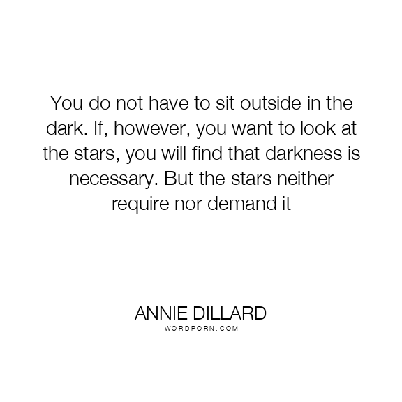 You do not have to sit outside in the dark. If, however, you want to look at the stars, you will find that darkness is necessary. But the stars neither require nor demand it