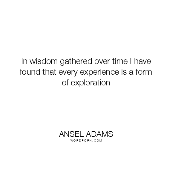 In wisdom gathered over time I have found that every experience is a form of exploration