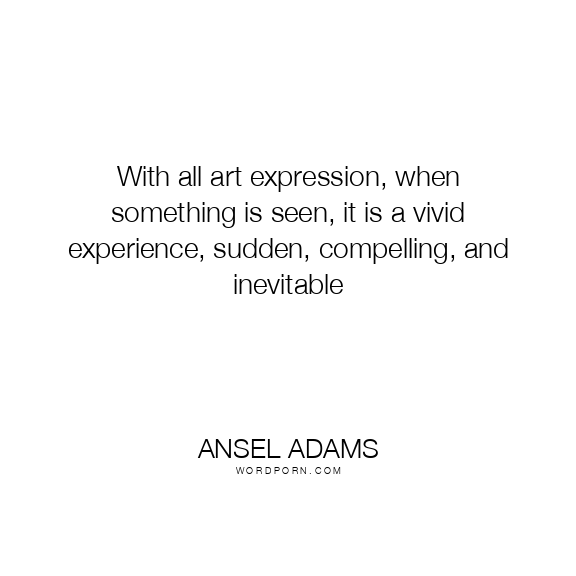 With all art expression, when something is seen, it is a vivid experience, sudden, compelling, and inevitable
