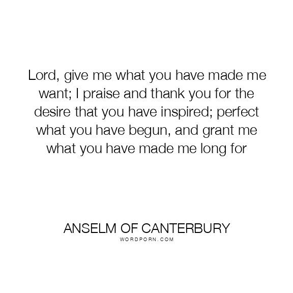 Lord, give me what you have made me want; I praise and thank you for the desire that you have inspired; perfect what you have begun, and grant me what you have made me long for