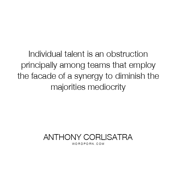 Copy Image Individual talent is an obstruction principally among teams that employ the facade of a synergy to diminish the majorities mediocrity Moms Typewriter A A SAVE THIS IMAGE