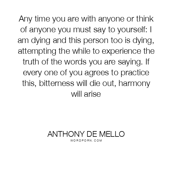 Any time you are with anyone or think of anyone you must say to yourself: I am dying and this person too is dying, attempting the while to experience the truth of the words you are saying. If every one of you agrees to practice this, bitterness will die out, harmony will arise