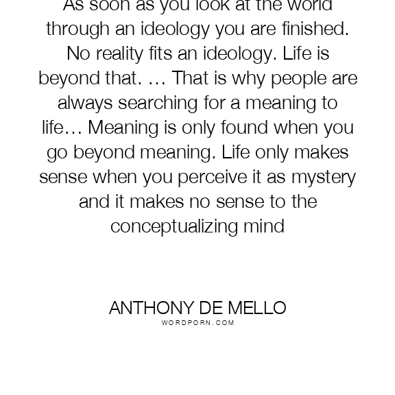 As soon as you look at the world through an ideology you are finished. No reality fits an ideology. Life is beyond that. … That is why people are always searching for a meaning to life… Meaning is only found when you go beyond meaning. Life only makes sense when you perceive it as mystery and it makes no sense to the conceptualizing mind