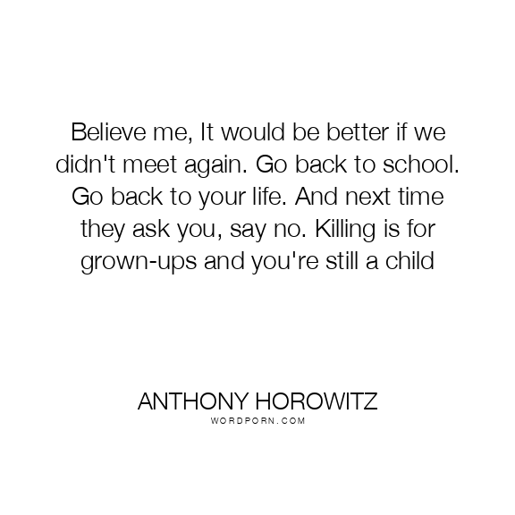 Believe me, It would be better if we didn't meet again. Go back to school. Go back to your life. And next time they ask you, say no. Killing is for grown-ups and you're still a child