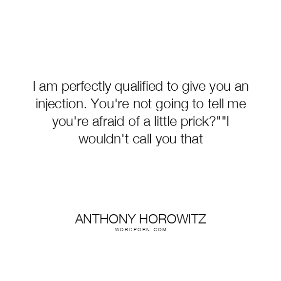 I am perfectly qualified to give you an injection. You're not going to tell me you're afraid of a little prick?""I wouldn't call you that