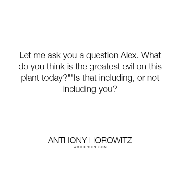 Let me ask you a question Alex. What do you think is the greatest evil on this plant today?""Is that including, or not including you?