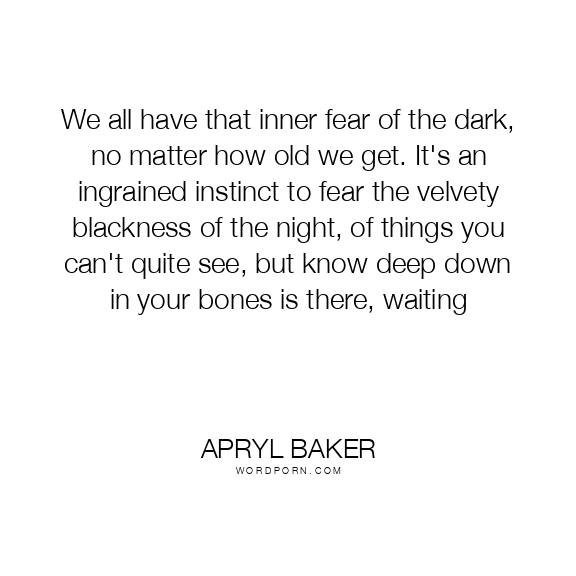 We all have that inner fear of the dark, no matter how old we get. It's an ingrained instinct to fear the velvety blackness of the night, of things you can't quite see, but know deep down in your bones is there, waiting