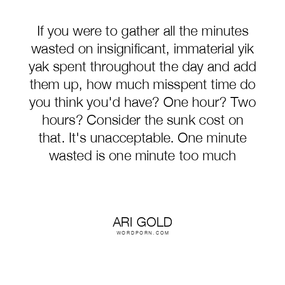 If you were to gather all the minutes wasted on insignificant, immaterial yik yak spent throughout the day and add them up, how much misspent time do you think you'd have? One hour? Two hours? Consider the sunk cost on that. It's unacceptable. One minute wasted is one minute too much