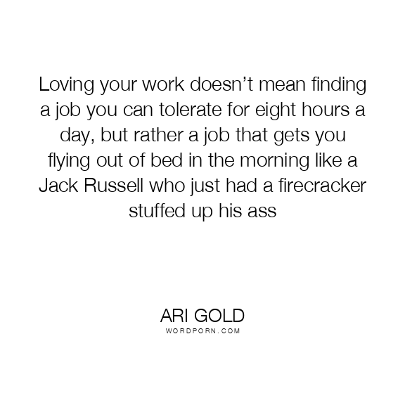 Loving your work doesn’t mean finding a job you can tolerate for eight hours a day, but rather a job that gets you flying out of bed in the morning like a Jack Russell who just had a firecracker stuffed up his ass