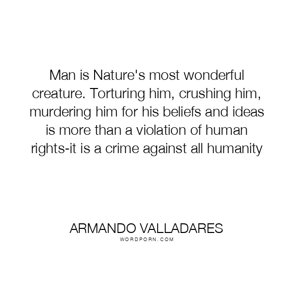 Man is Nature's most wonderful creature. Torturing him, crushing him, murdering him for his beliefs and ideas is more than a violation of human rights-it is a crime against all humanity