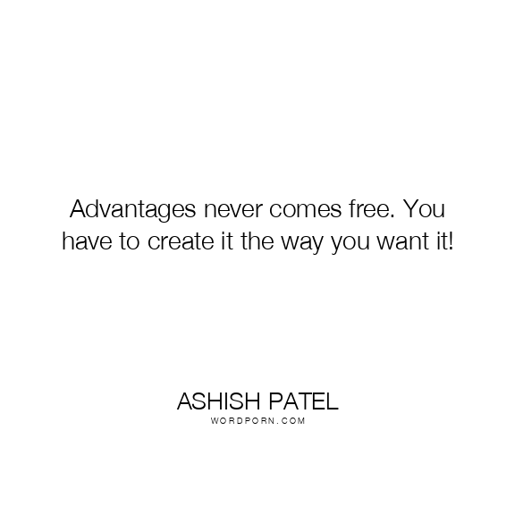 Advantages never comes free. You have to create it the way you want it!