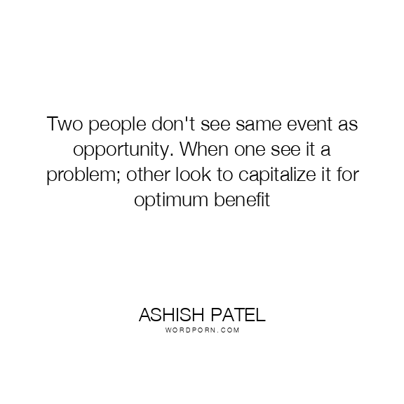 Two people don't see same event as opportunity. When one see it a problem; other look to capitalize it for optimum benefit