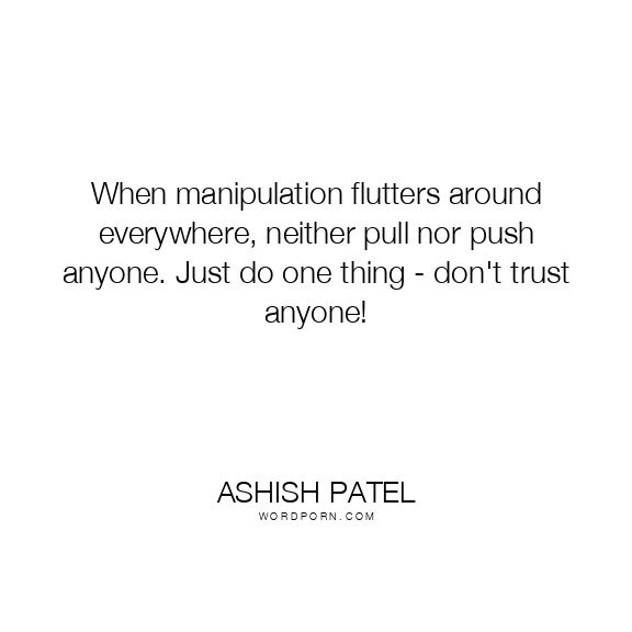When manipulation flutters around everywhere, neither pull nor push anyone. Just do one thing - don't trust anyone!