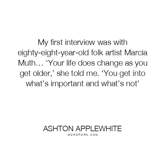 My first interview was with eighty-eight-year-old folk artist Marcia Muth… ‘Your life does change as you get older,’ she told me. ‘You get into what’s important and what’s not’